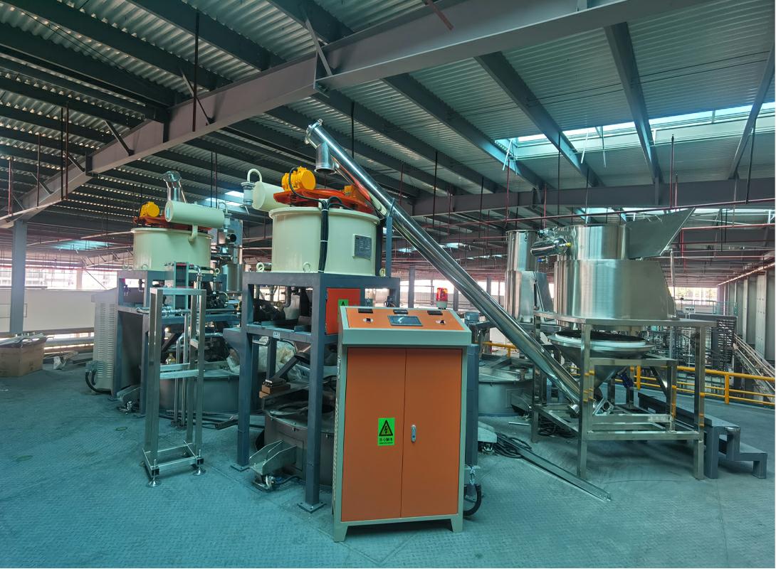 300噸鈦酸鋇粉體除鐵自動化生產(chǎn)線,該案例使用的是電磁干粉除鐵機,電磁干粉磁選機其磁系特點為包角大、多磁極,機器選別區(qū)的磁通密度絕對值較為平均,可根據(jù)礦石性質(zhì)不同設(shè)計不同的場強;當(dāng)非磁性礦物脫離磁場時,在重力的作用下,礦物能很好地與磁筒分離;并且,電磁干粉機增加了機械振動裝置,不僅能提高除鐵效果,而且可方便地實現(xiàn)完全卸掉鐵雜質(zhì)。